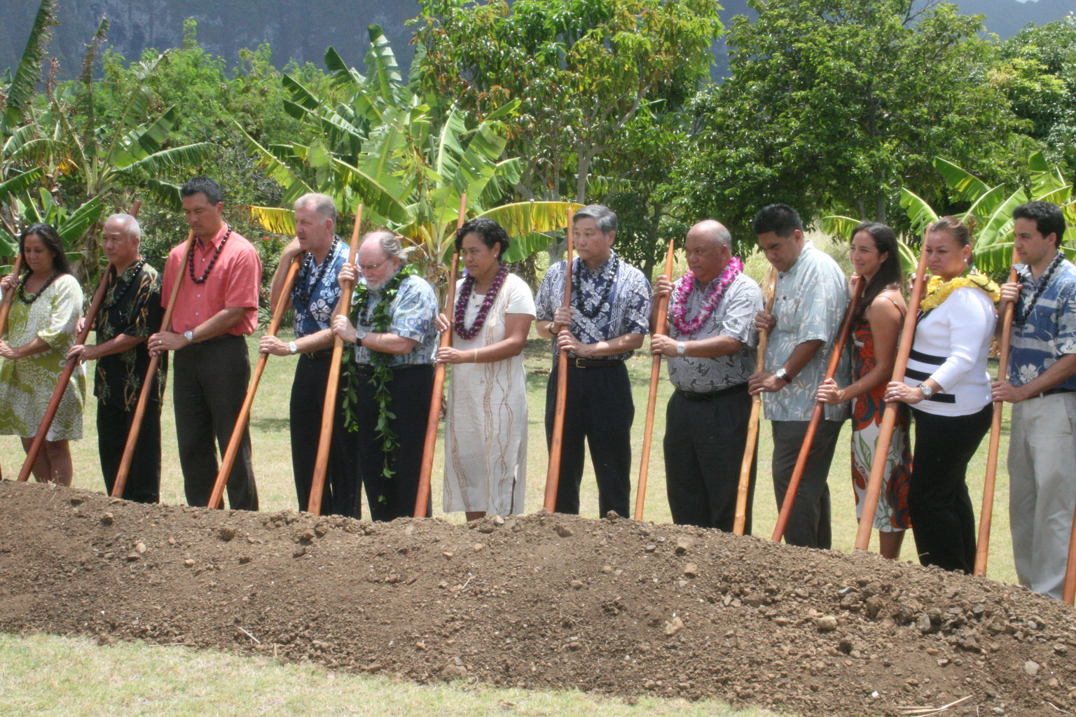WAIMĀNALO, OʻAHU – Governor Neil Abercrombie, community leaders, government officials, and future homesteaders joined Chair-designate Jobie Masagatani, Hawaiian Homes Commissioners and the Department of Hawaiian Home Lands in a groundbreaking ceremony today to begin construction of what will be the future home for 44 Hawaiian Homes beneficiaries and their families in the new subdivision of Kakaina in Waimānalo.